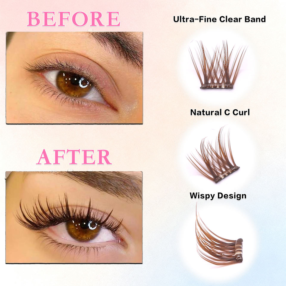 Pestañas Marrones Nuevo Tipo 10 Filas Pestañas Sin Pegamento Fácil Aplicación Pestañas Reutilizables Grupos de Pestañas Sin Necesidad de Pegamento