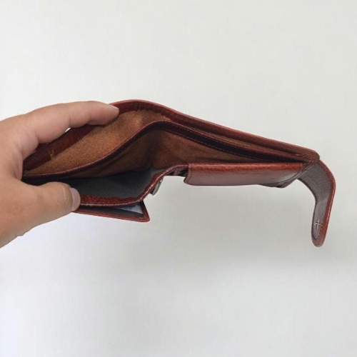 Nombre del producto:Cartera Bifold de Cuero Marrón con Bloqueo RFID y Cierre a Presión para Hombre