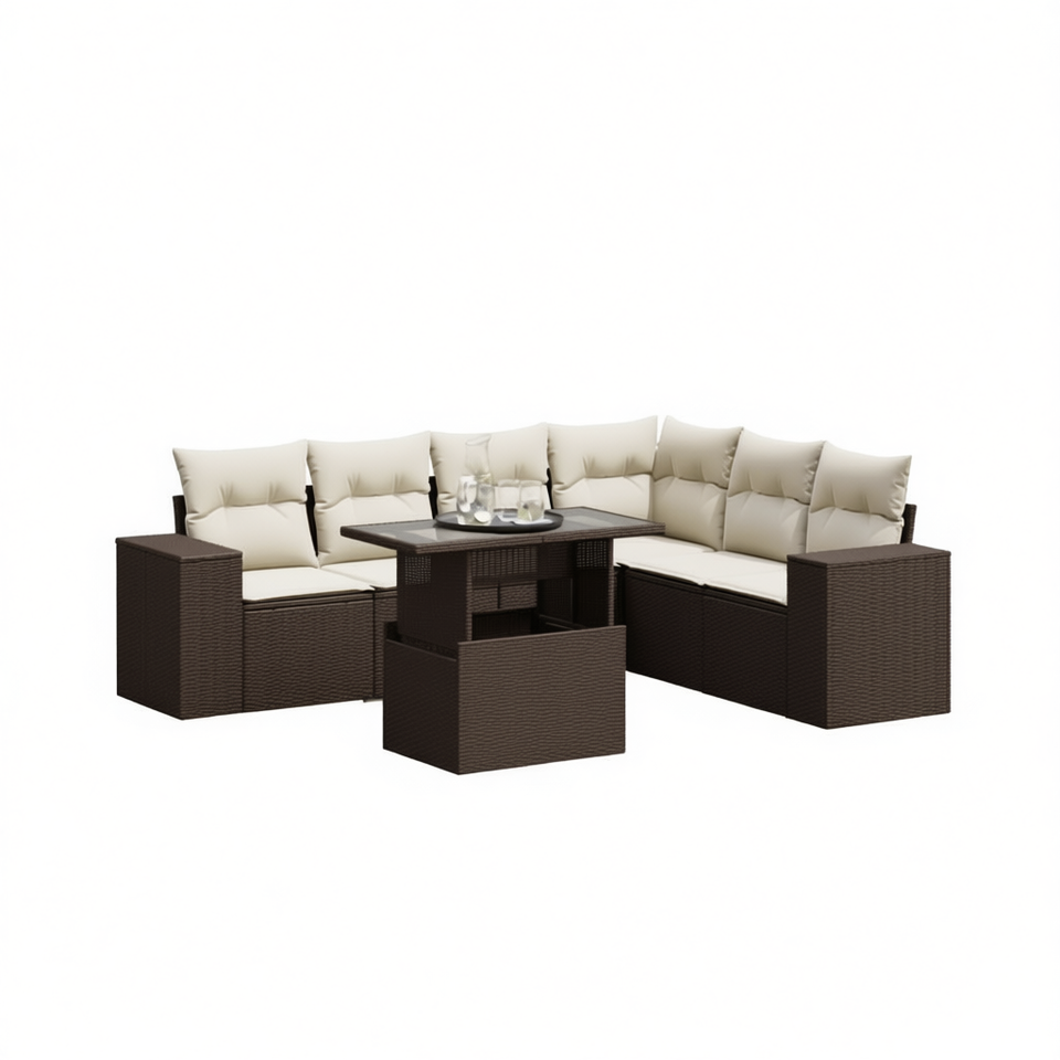 Conjunto de Sofá de Jardín de Ratán Marrón para Exteriores con Cojines Color Crema, Diseño Contemporáneo, Impermeable, para Uso en Patio