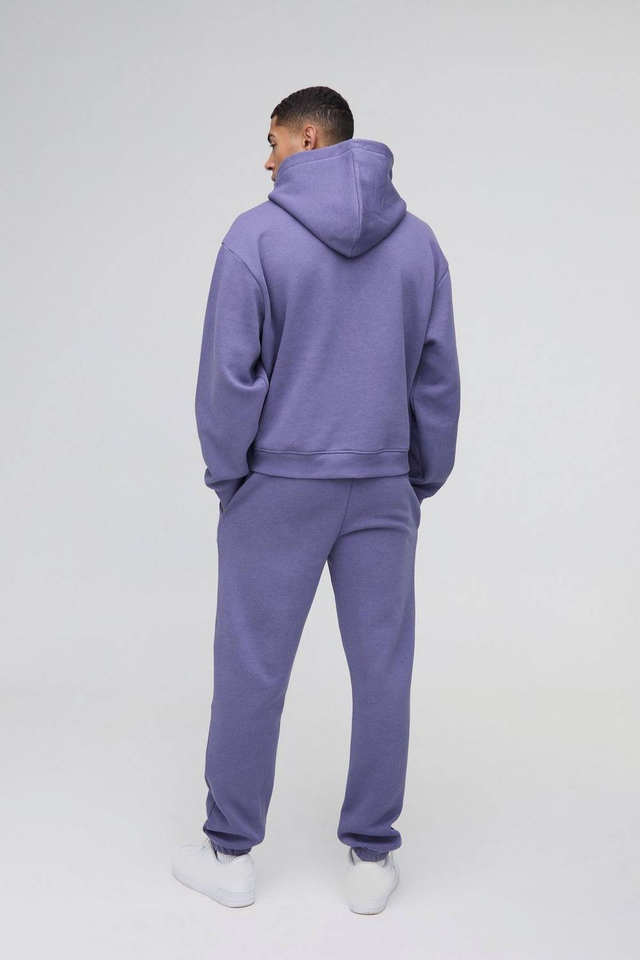 Conjunto de Sudadera con Capucha y Pantalones Deportivos Extra Grandes de Color Marrón con Mangas Raglán, Estilo Holgado, Lavado Ácido, para Hombre