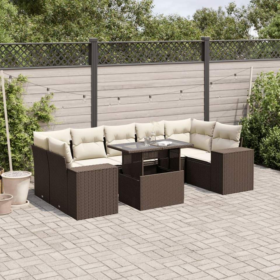 Conjunto de Sofá de Jardín de Ratán PE Marrón con Acero con Recubrimiento en Polvo y Vidrio Templado, Muebles de Exterior Premium