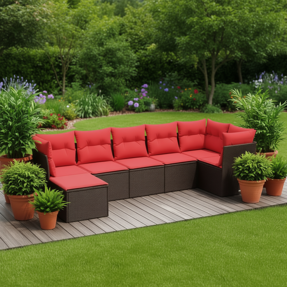 Conjunto de Sofás de Patio de Ratán Sintético Marrón con Cojines, Muebles de Jardín para Exteriores, Diseño Contemporáneo