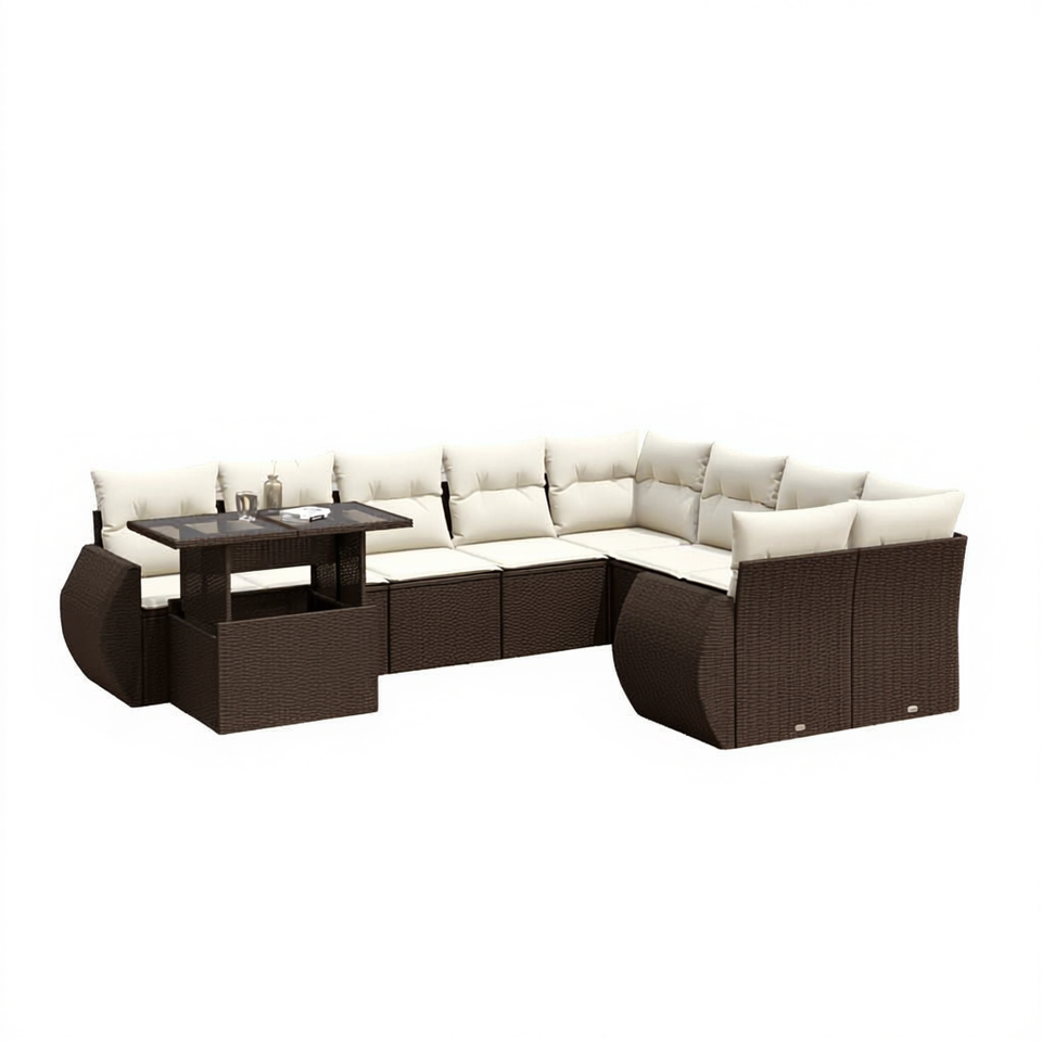 Conjunto de Sofá de Jardín de Ratán Marrón con Cojines Color Crema, Diseño Contemporáneo Modular para Exteriores, Muebles de Varias Piezas