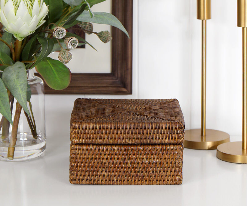 Caja de Almacenamiento de Ratán Marrón, Caja de Almacenamiento Hecha a Mano, Ecológica, Decoración Natural para el Hogar, Venta al por Mayor desde Vietnam