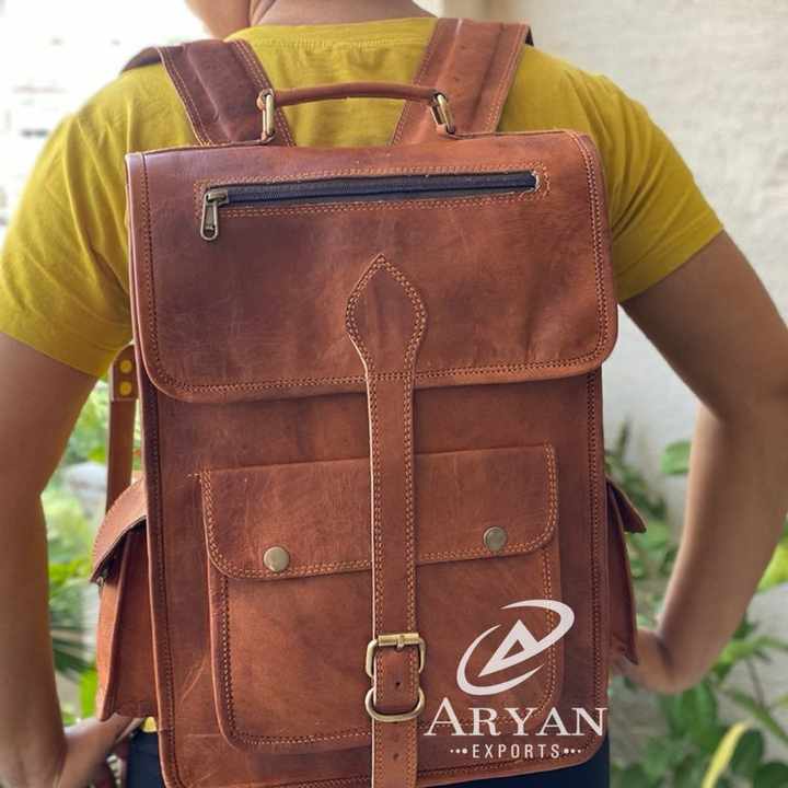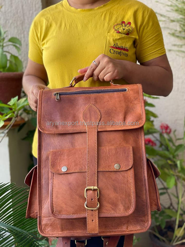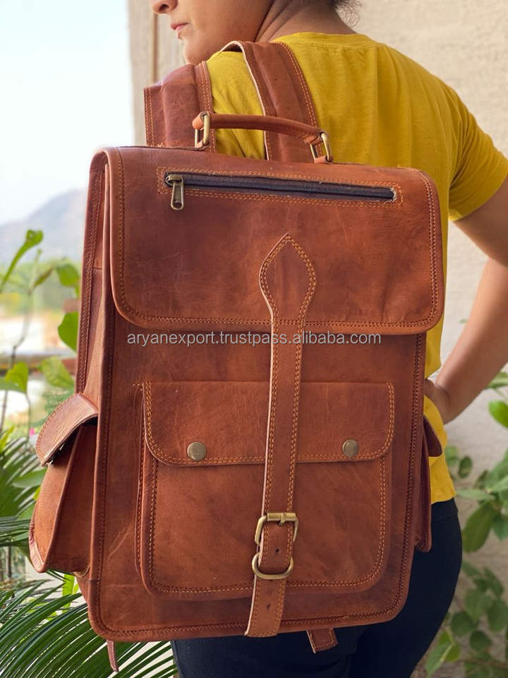 Mochila De cuero auténtico para hombre y mujer, morral Unisex de piel de cabra hecha a mano, marrón, 11x15 pulgadas