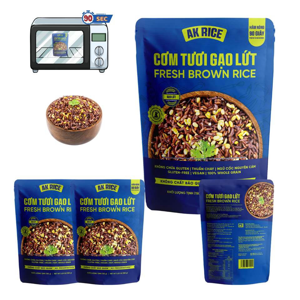 Arroz integral Recién cocido Listo para comer Comida para microondas Suministro directo de Vietnam Arroz instantáneo MRE Sin Gluten