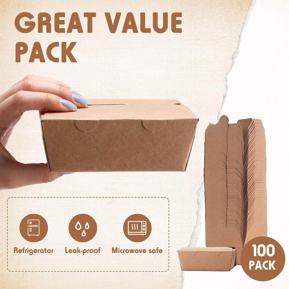 Cajas marrones para llevar, 16,9 oz, contenedores para llevar alimentos, fiambreras Kraft desechables, comidas, bodas, fiestas pequeñas