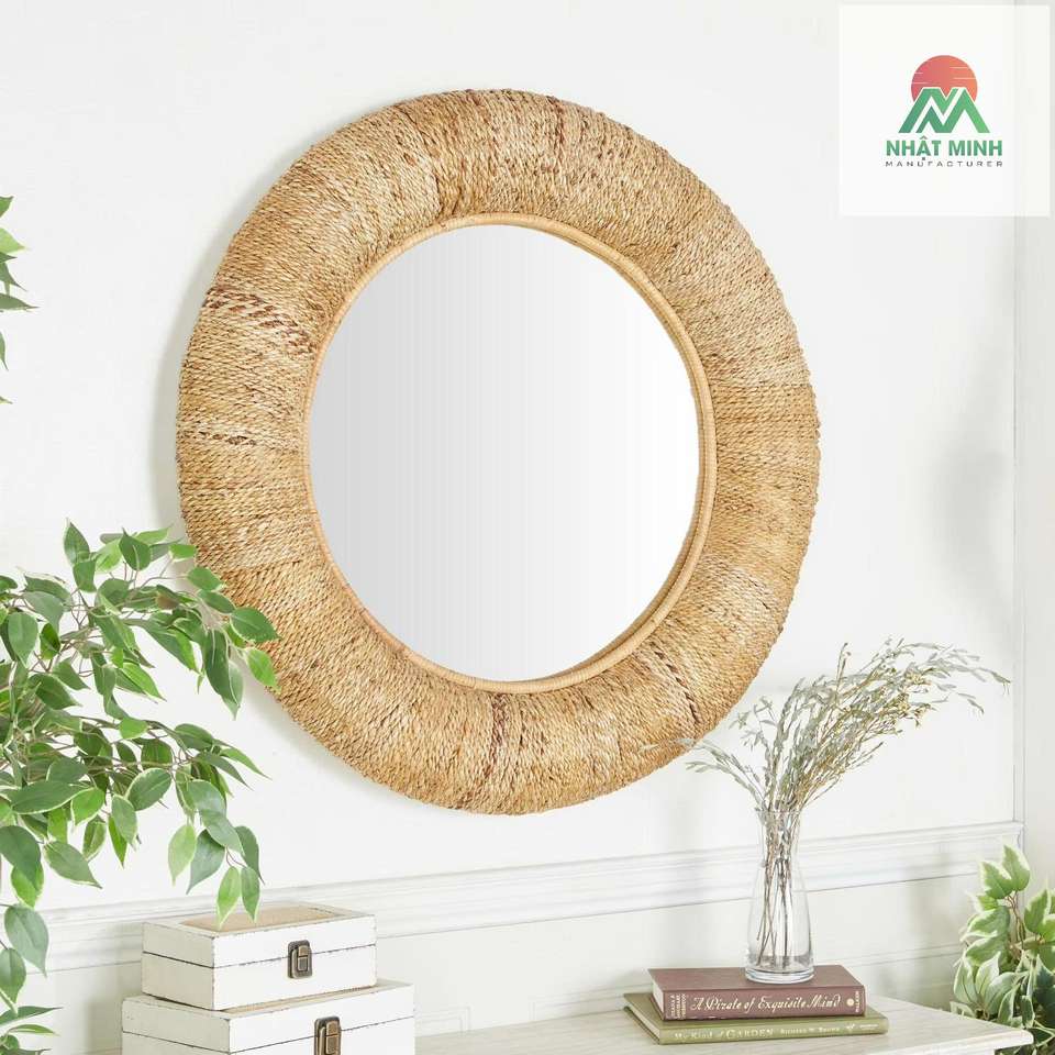 Nombre del producto:Espejo de pared redondo de ratán tejido marrón, 35" de profundidad