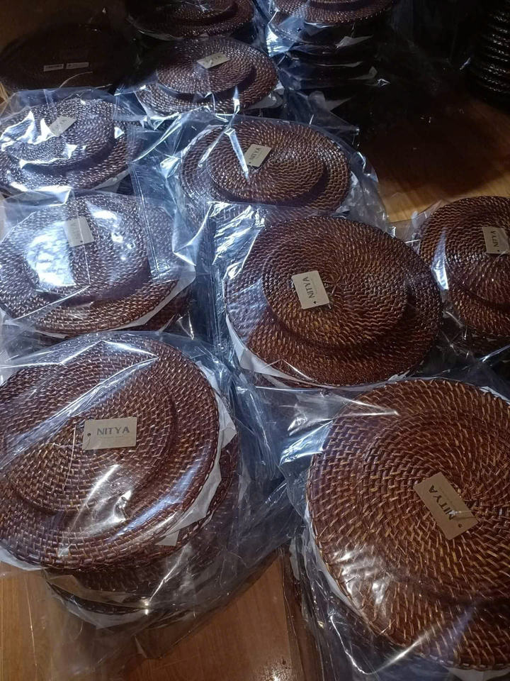 Plato de Rattan Marrón y Blanco Hecho a Mano para Decoración de Mesa en Bodas y Fiestas