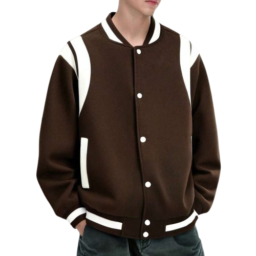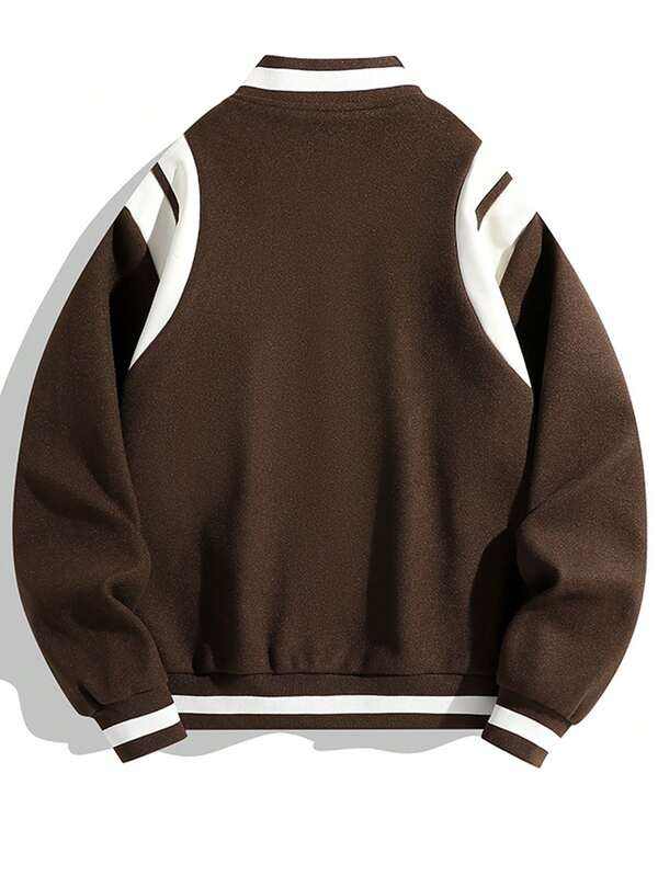 Chaqueta de béisbol de mezcla de lana marrón y blanca para hombre, ropa de abrigo universitaria con forro polar, ropa de calle cálida, moda de invierno
