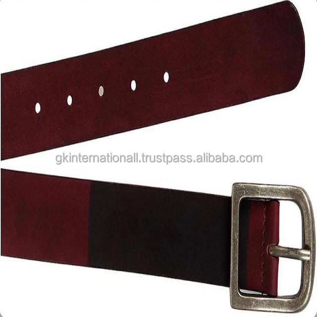 Cinturón casual de piel marrón y granate para hombre con hebilla antigua de latón macizo precio al por mayor