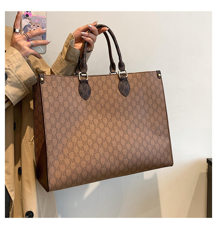 Bolso de mano con monograma marrón, diseño clásico, bolso de moda para mujer