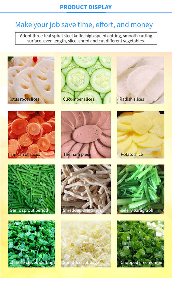 Forma de corte:Rebanada de raíz de loto, rebanada de pepino, rebanada de zanahoria, rebanada de patata, etc.