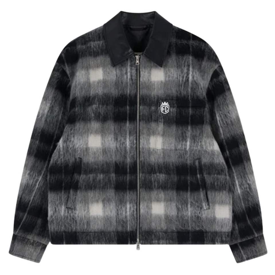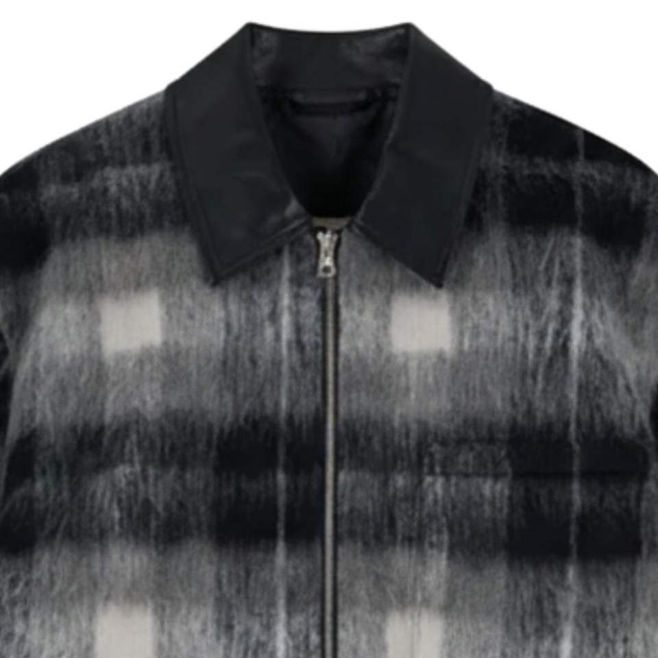 Chaqueta a Cuadros con Cuello en Contraste para Hombre en Blanco y Negro con Cierre de Cremallera de Diseño Elegante y Tela de Alta Calidad