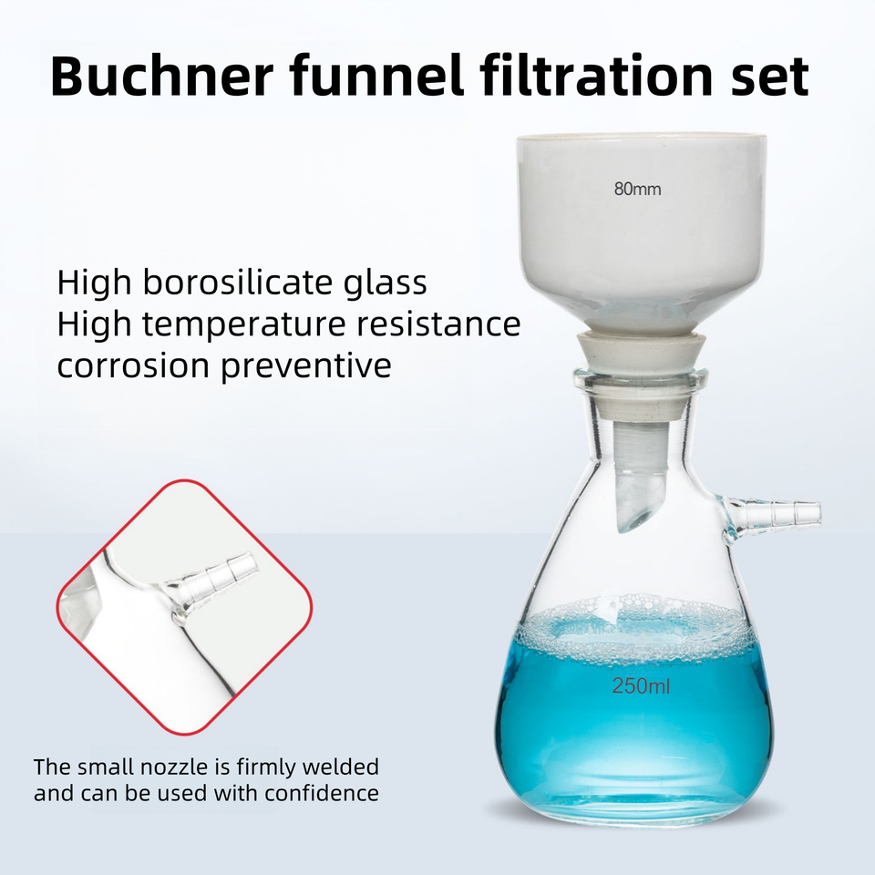 Kit de Embudo Buchner, Sistema de Filtración al Vacío de Presión Negativa, 125-5000 ml, Boquillas Superior/Inferior, Botella con Filtro de Óxido de Silicio