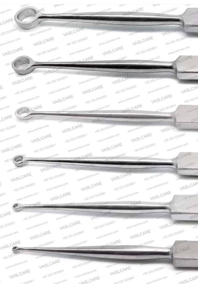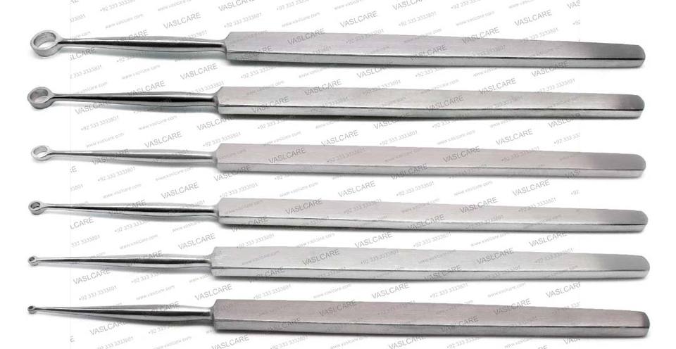Curetas de oreja Buck Romo Recto Impresión de logotipo personalizado La mejor herramienta ENT manual de acero inoxidable Vasilcare Hecho en Pakistán