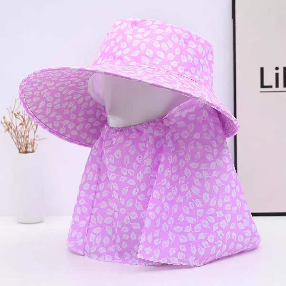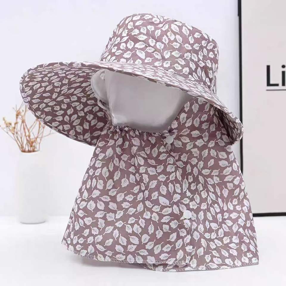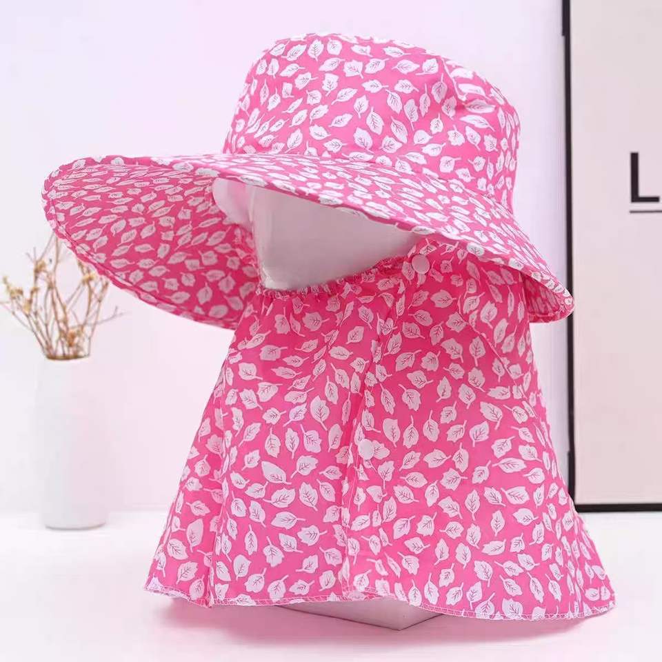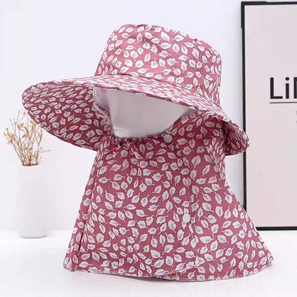 Sombrero de Pescador con Solapa para el Cuello, Estampado de Hojas Rosas, Protección UV, Sombrero para Adultos para Recolectar Té