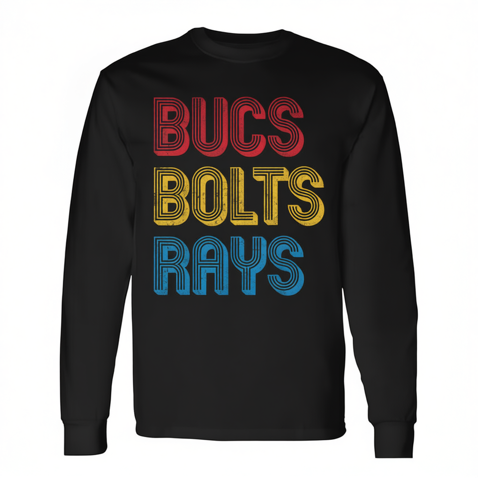 Camiseta de Manga Larga Bucs Bolts Rays para Adultos, Unisex, Cuello Redondo, Deportes y Juegos, Impresión en Serigrafía