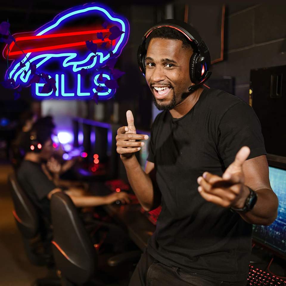 Letrero de Neón de Fútbol Americano Buffalo, Luz LED de Neón para Decoración de Pared, Cuarto de Hombre, Oficina, Bar, Pub, Sala de Juegos
