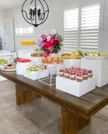 Buffet comida postre 8 pulgadas caja estrecha elevador acrílico blanco comida soporte de exhibición