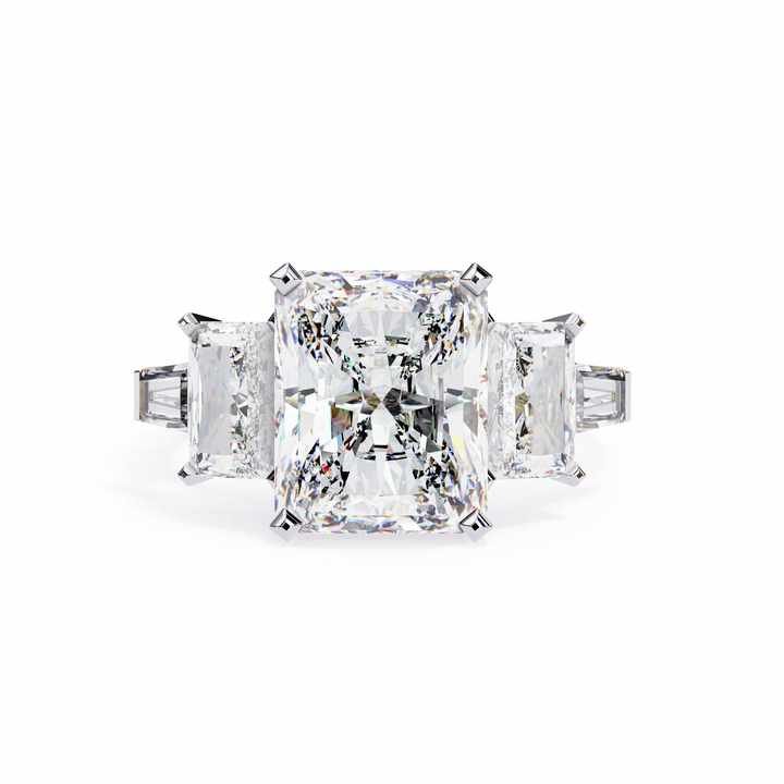 Anillo Solitario Buguette con Piedra, Oro Blanco y Rosa Sólido de 18K, Halo Oculto, Banda con Pavé, Anillo de Compromiso con Diamante para Mujer