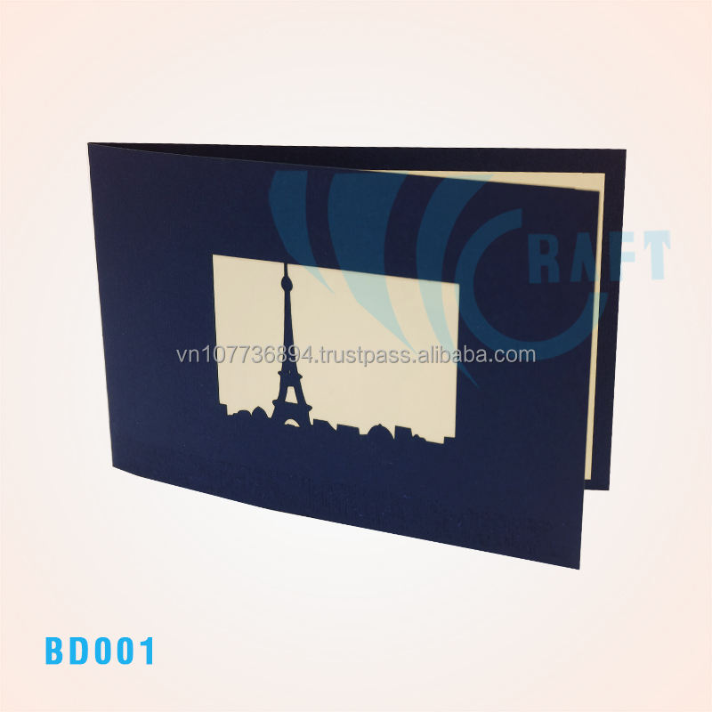 Tarjeta emergente cortada con láser de construcción 3D hecha a mano, manualidades de papel de diseño personalizado de Vietnam para saludos y regalos