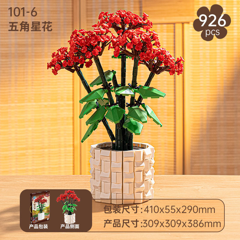 Set de Bloques de Construcción de Flores 101-6, Planta en Maceta Simulada, Decoración para el Hogar, Regalo para el Día de San Valentín