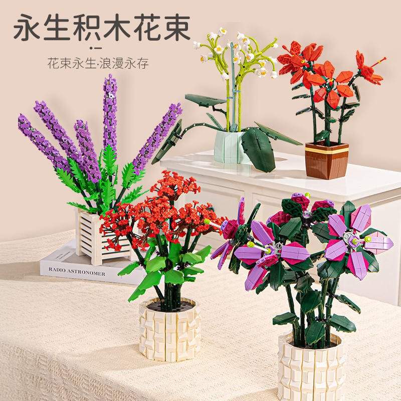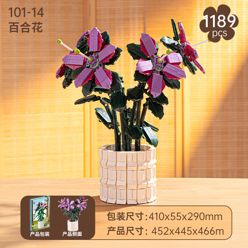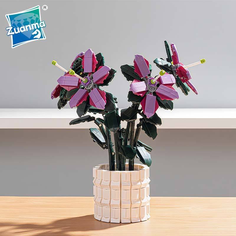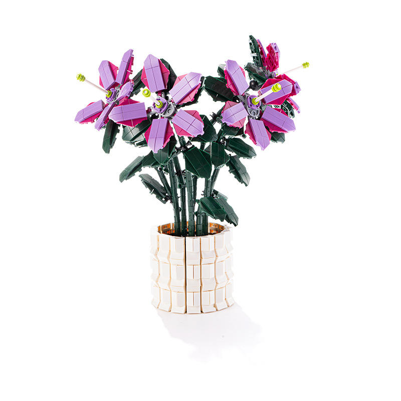 Bloques de Construcción, Modelo de Flor, Lirio en Maceta, Juguete DIY, Plástico Compatible con Cemento, Ensamblaje de Más de 800 Piezas, Edades 7-14, Regalo para Jóvenes