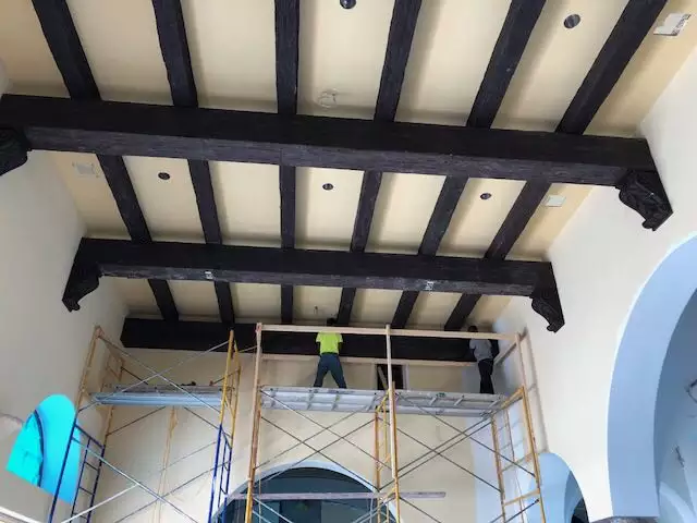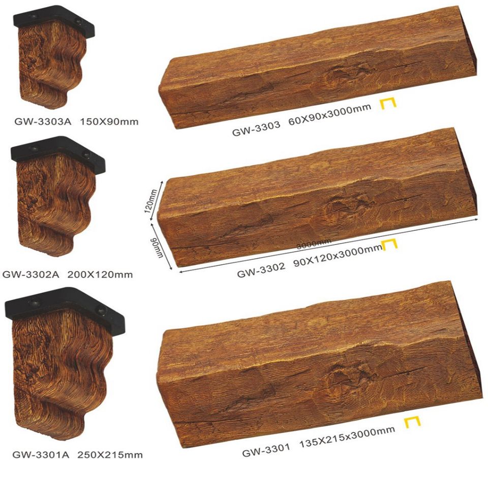 Vigas de Poliuretano Ligeras con Aspecto de Madera, Paneles de Pared de Madera Artificial de PU, Diseño Modelo Nogal, para Techo Interior y Exterior