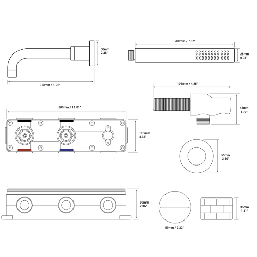 Columna de baño empotrada o cepillada