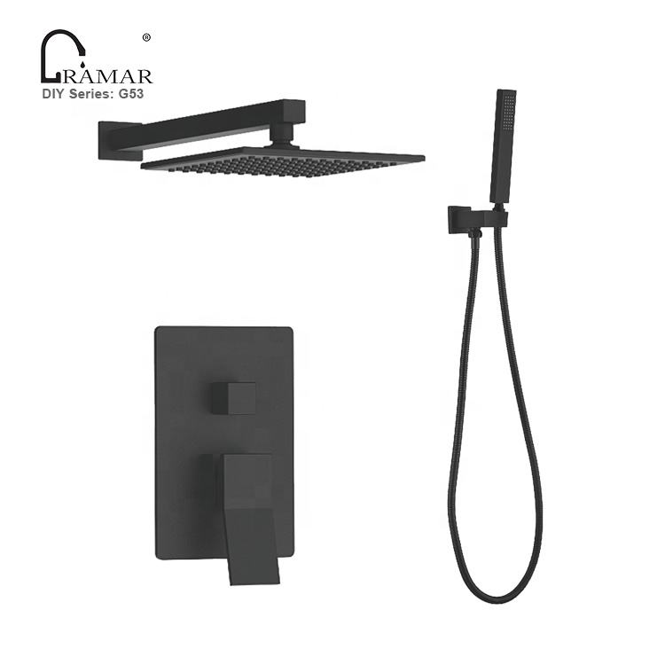 Ducha de baño de lluvia de 8 12 pulgadas, montaje oculto en pared, termostático, latón negro mate
