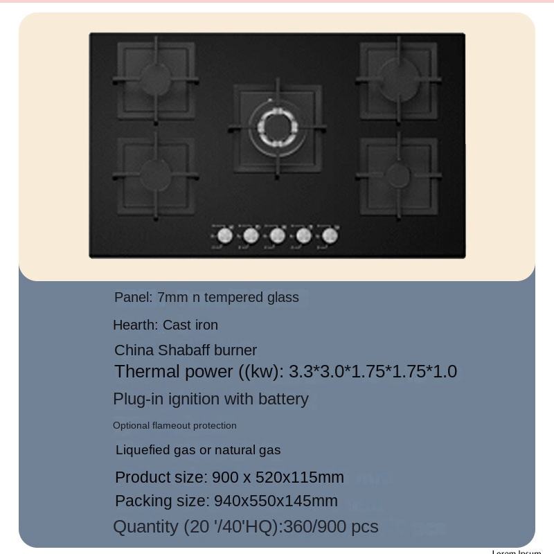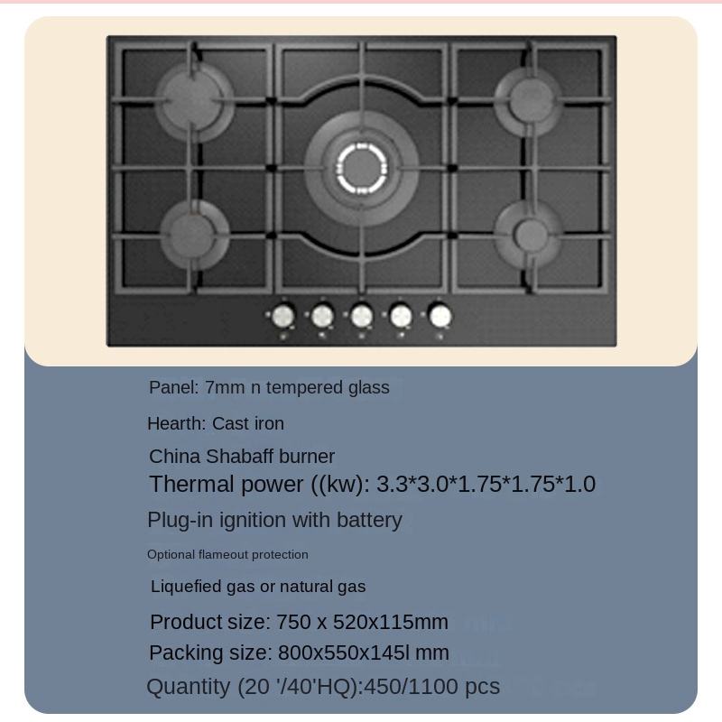 Modo de encendido del quemador de gas:Encendido cerámica piezoeléctrica