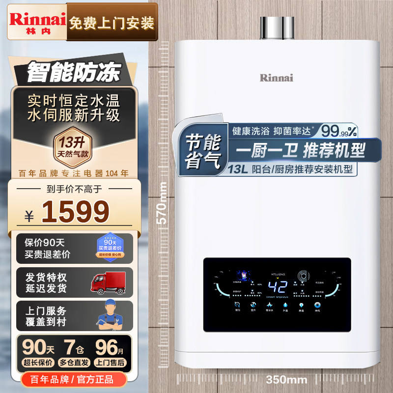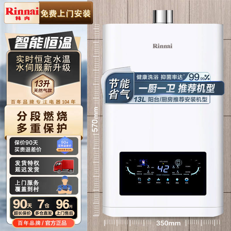Calentador de Agua a Gas Natural sin Tanque Rinnai con Presurización Integrada, Extracción Forzada, Temperatura Constante, Sin Agua Fría