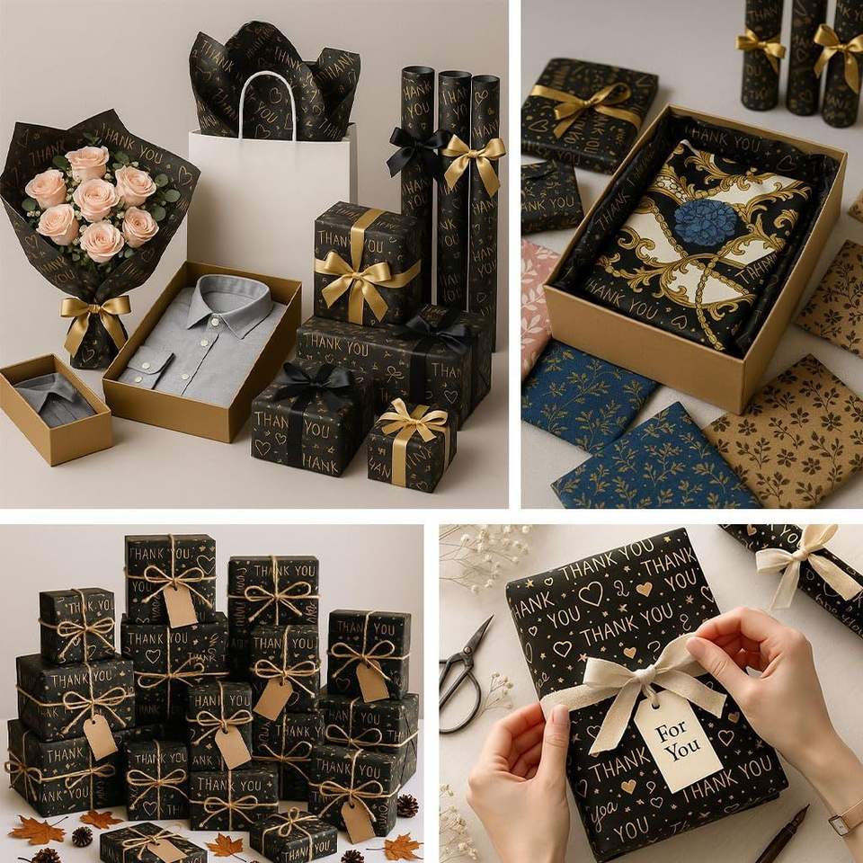 Paquete de 20 Papel de Seda Negro de 14 Pulgadas, 100 Hojas, Papel de Seda para Regalos, Bolsas, Manualidades, Decoraciones para Fiestas de Acción de Gracias