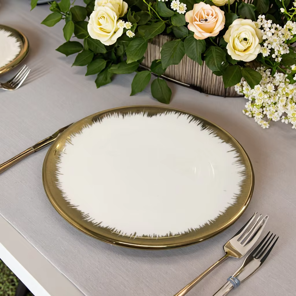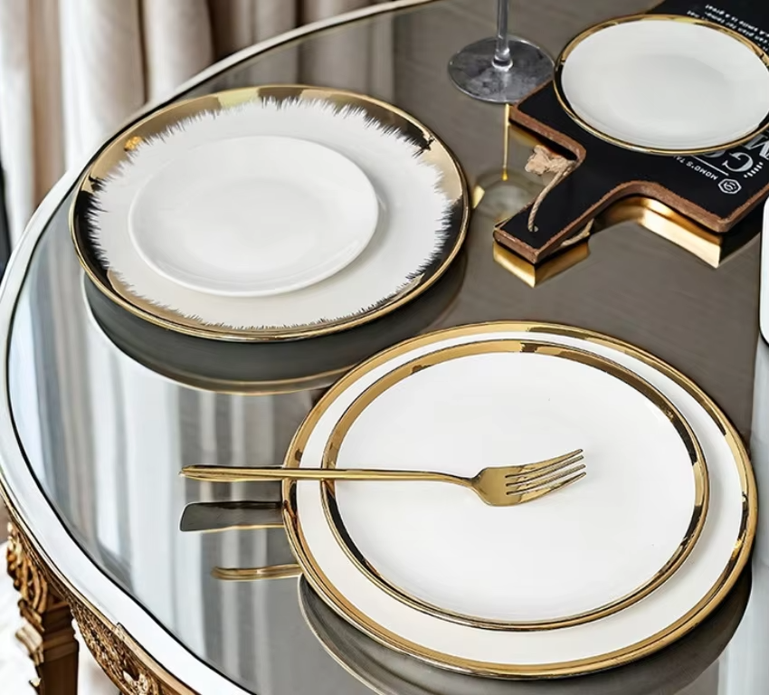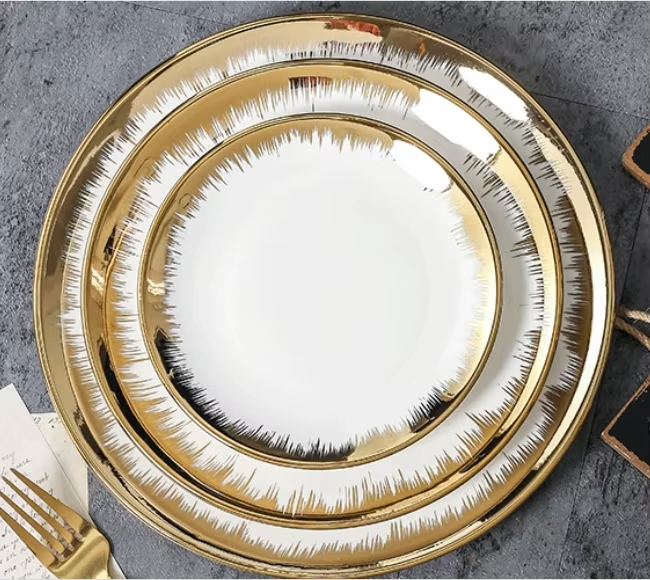 Compra al por Mayor de Platos Hondos de Cerámica con Borde Dorado de Lujo, Platos para Ensalada/Postre, Vajilla de Porcelana para Cenas Formales