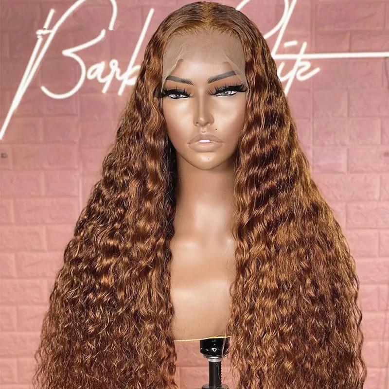Venta al por mayor de peluca con encaje frontal, pelo largo ondulado, negro, marrón, pelo rizado, cubierta para Europa, América y África, bien recibido