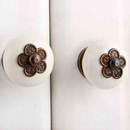 Myosotis-tiradores de cerámica únicos para armario, tiradores de cerámica de color crema, cajón de vestidor de dormitorio sólido con placa de fondo, SCFK-59 de 3,55 cm