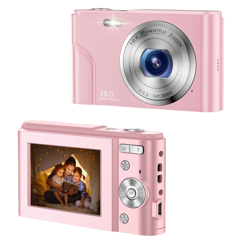 A granel barato personalizado desechable Fujifilm DSLR Digital 1080p 16X Zoom papel disparar Retro niños Cámara Digital rosa para niños