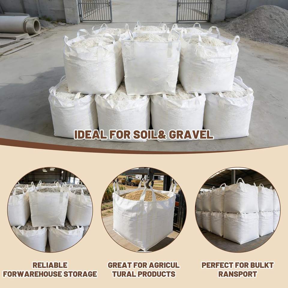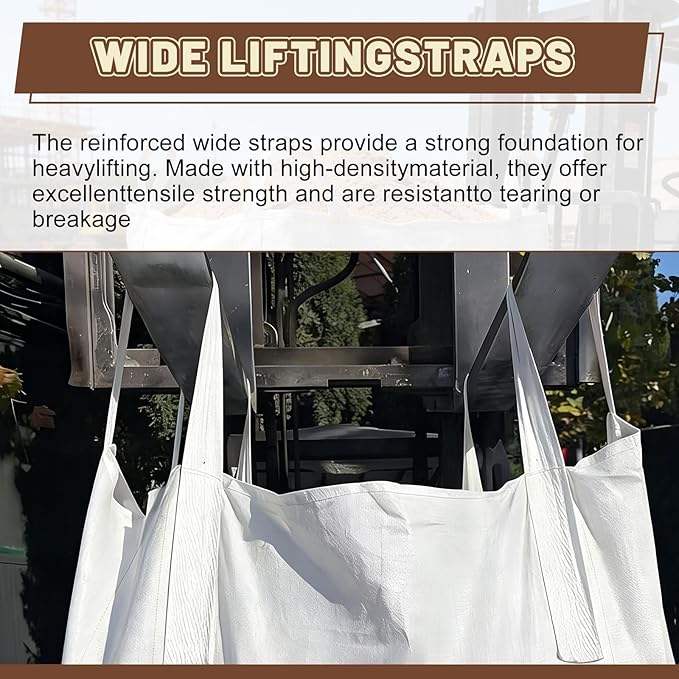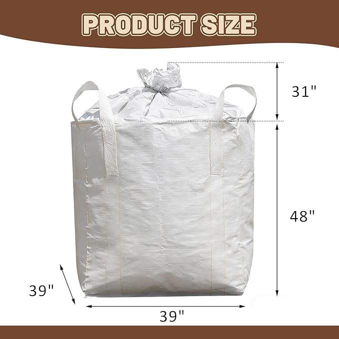 Bulk Container Bags, 2200Lbs Load Capacity, 35"L x 35"W x 43"H, Woven Polypropylene Sacks, 4 Fastening Hooks, Flat Bottom