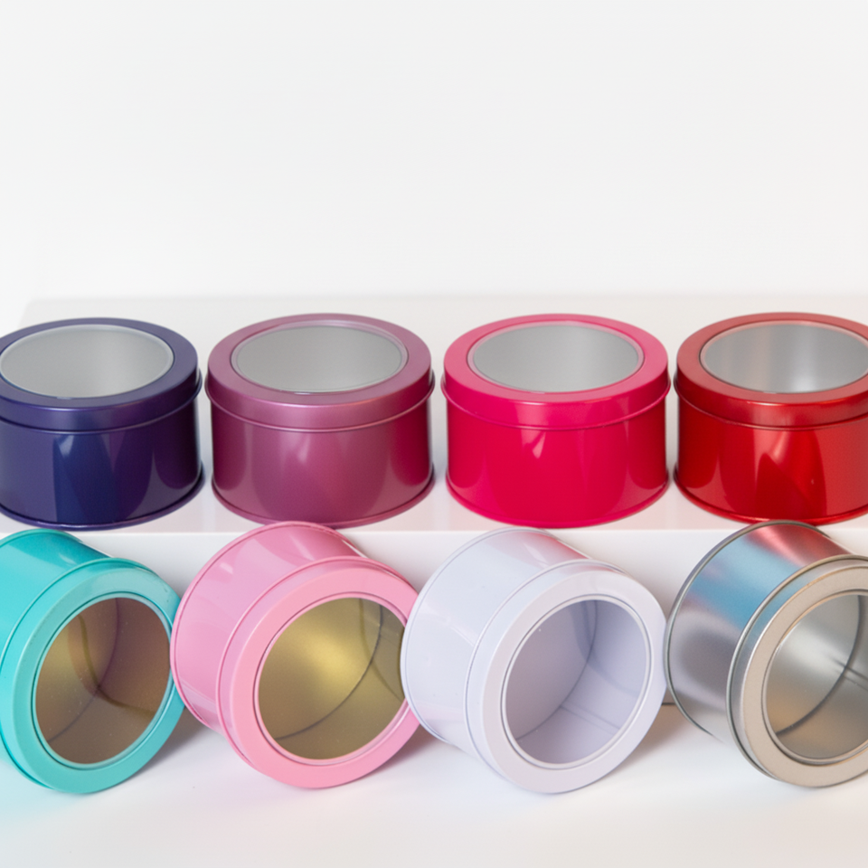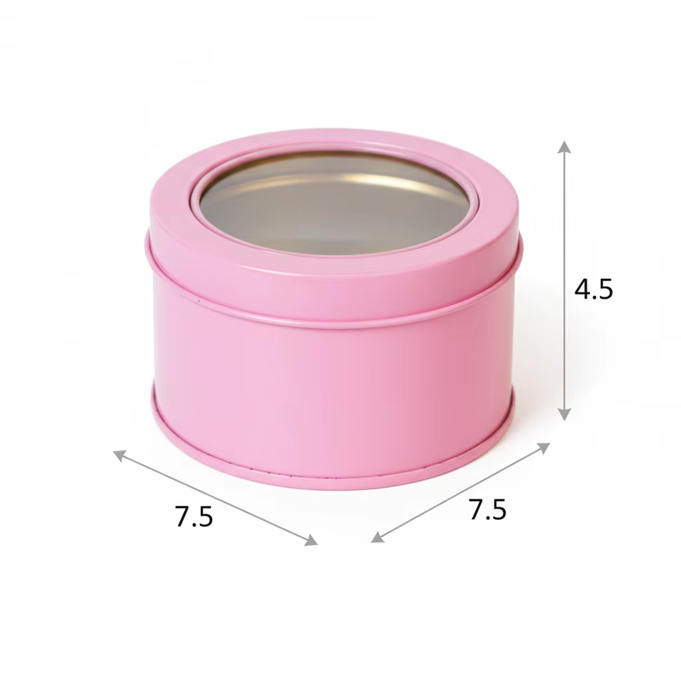 Caja Redonda de Metal para Almacenamiento de Dulces y Bocadillos Personalizada al por Mayor con Tapa Transparente