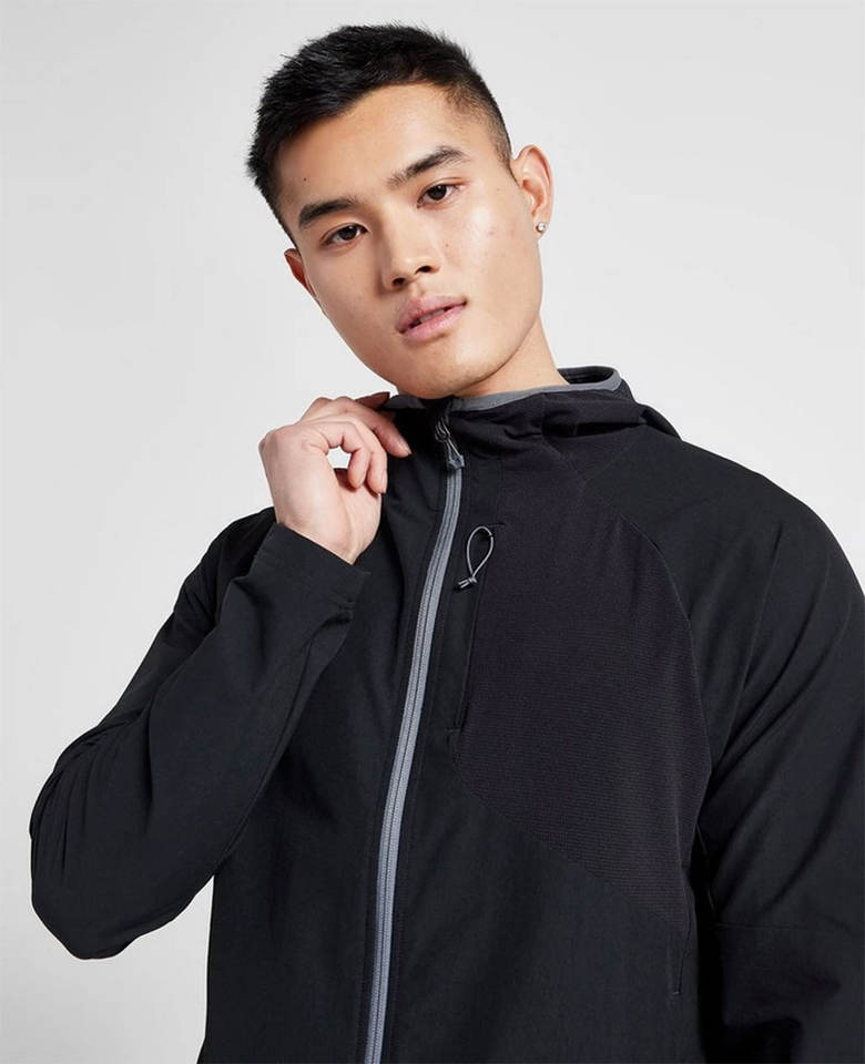 Chaqueta de entrenadores cortavientos transpirable para hombre con logotipo personalizado a granel con bolsillos ocultos