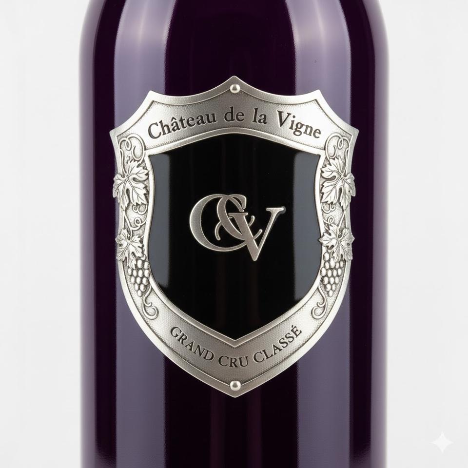 Etiquetas adhesivas metálicas personalizadas al por mayor, logotipo en relieve 3D, etiquetas de vino metálicas personalizadas