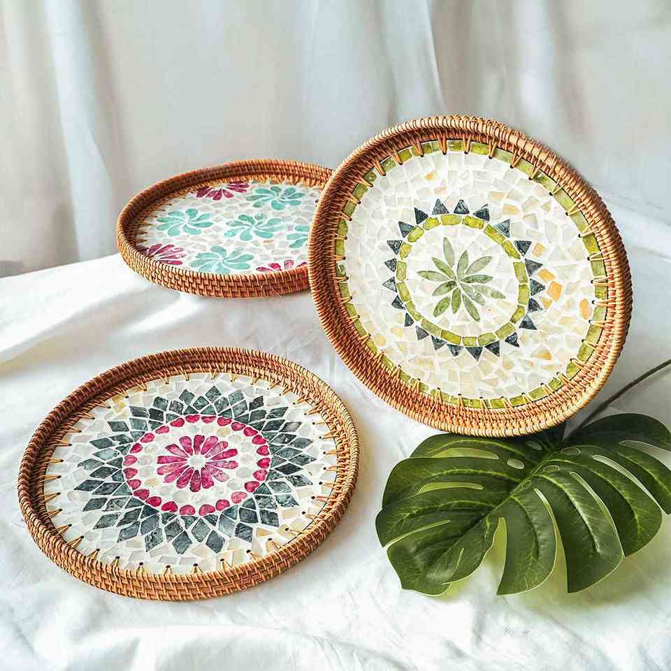 Oferta a granel 2024 Bandeja de artesanía Bandeja de ratán Mosaico Decoración para servir té Vietnamita hecho a mano