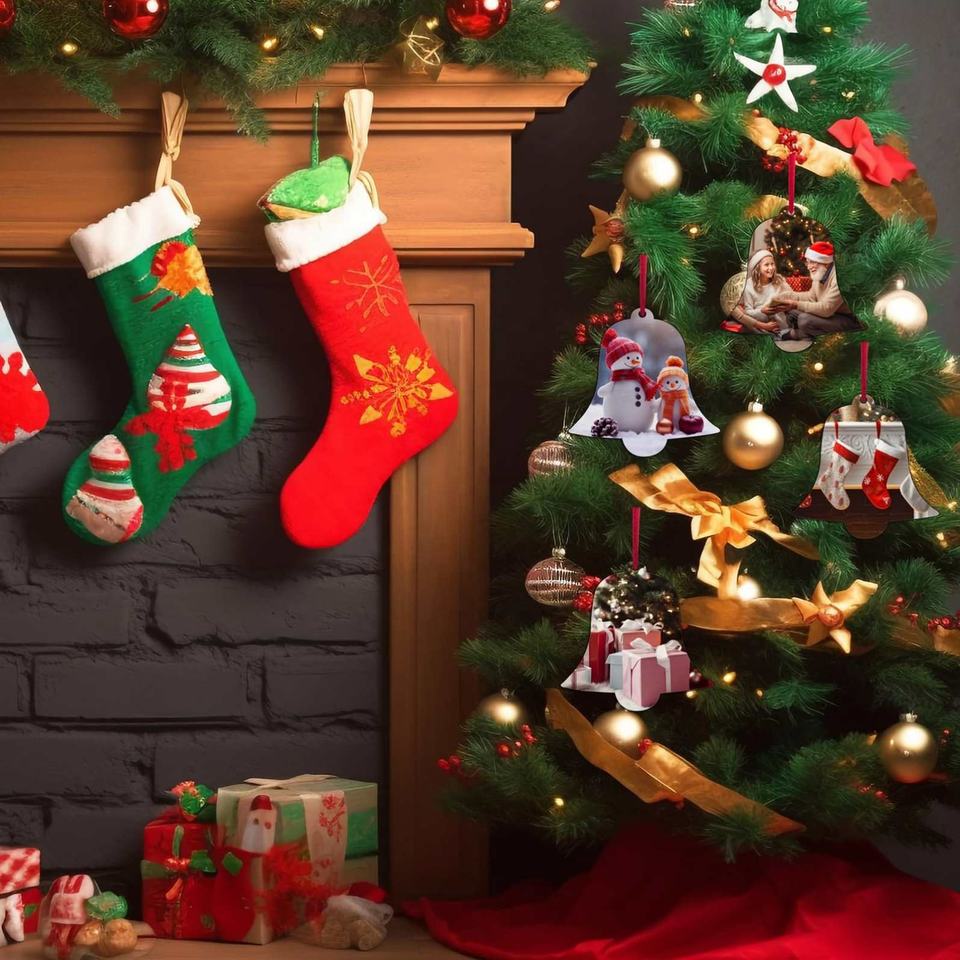 Adornos navideños de MDF de doble cara a granel, adornos conmemorativos de sublimación en blanco para decoraciones, adorno navideño de transferencia de calor