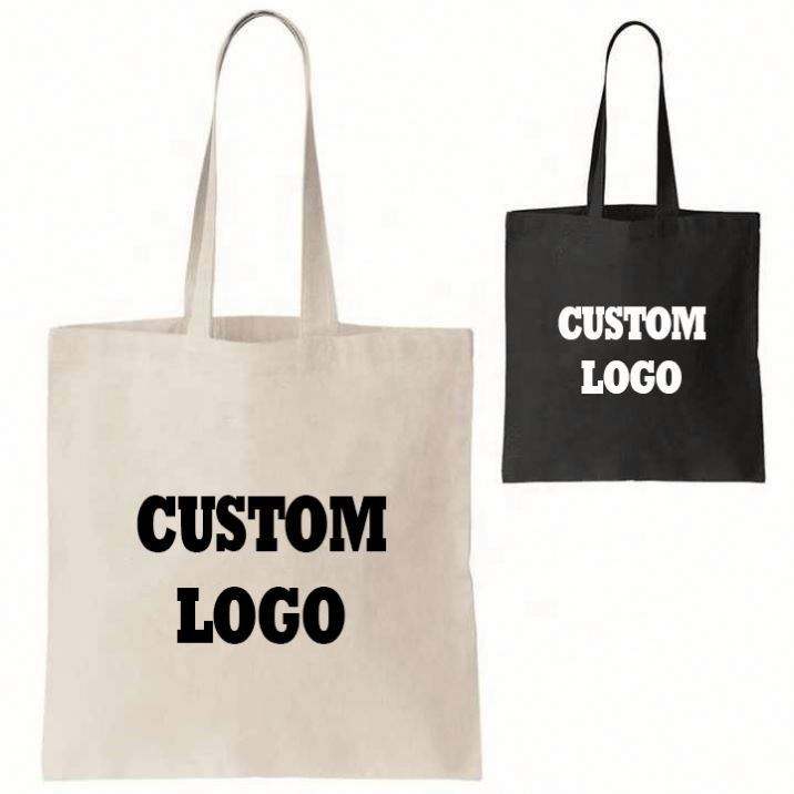 Bolsas de Compras de Lona de Algodón Reutilizables, Ecológicas, de Color Sólido, Lisas, con Diseño de Logotipo Personalizado, Tamaño Mediano, al por Mayor