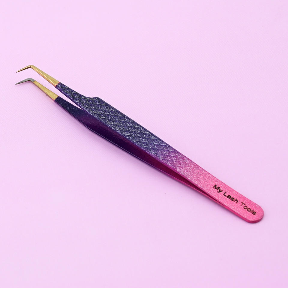 Pinzas de extensión de pestañas con punta de fibra a granel, volumen de bota de 90 grados, juego clásico curvo, pinzas, agarre de diamante para pestañas individuales