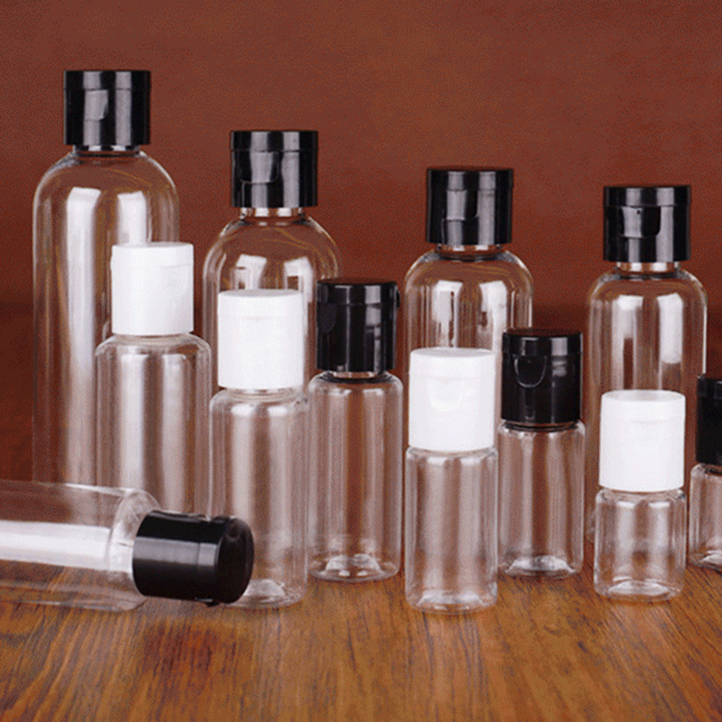Muestra Gratuita al por Mayor de Botellas de Plástico PET de 30-100 ml, Envases Cosméticos Transparentes con Tapa Abatible Blanca a Prueba de Fugas