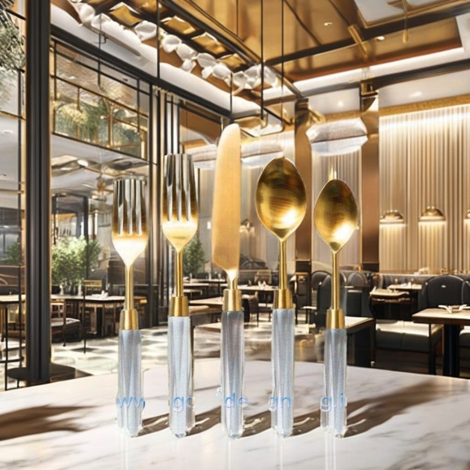 Product name:clear acrylic handle gold pvd flatware set