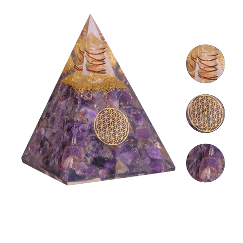 Pirámide de orgón de amatista hecha a mano a granel con bobina de cobre cristal EMF protección Chakra curación meditación energía decoración espiritual
