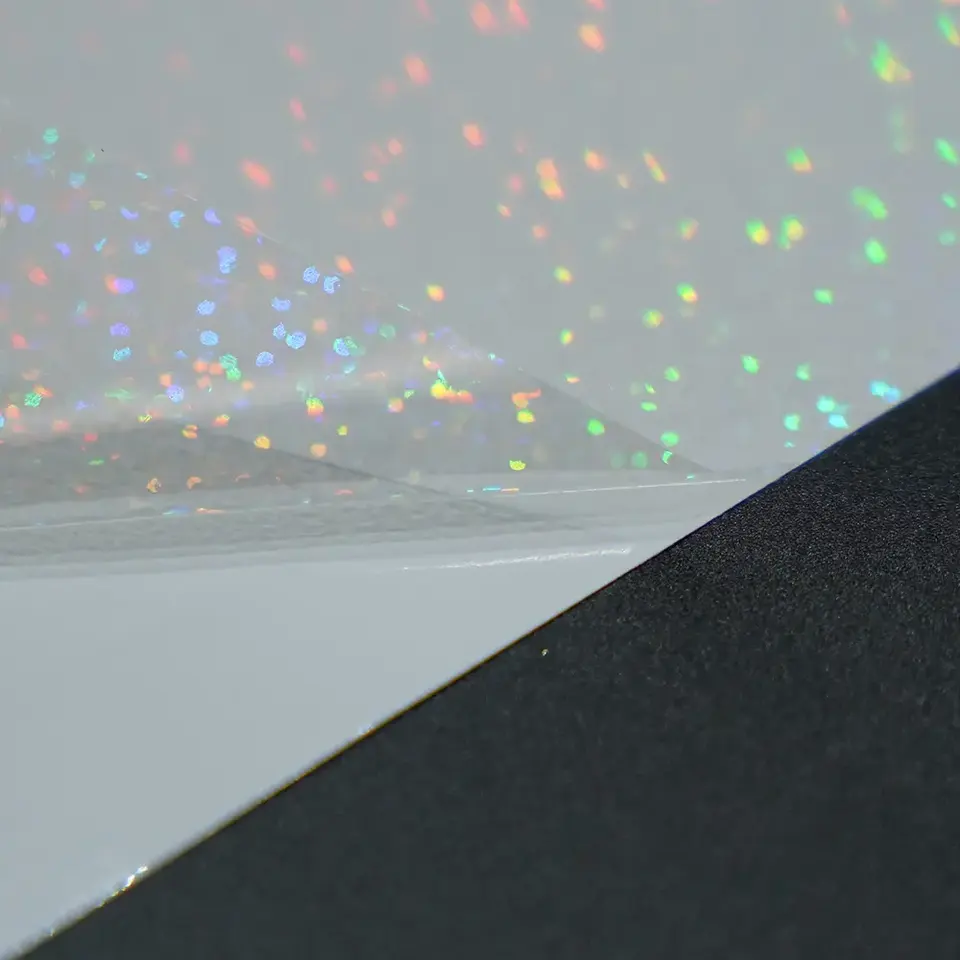 Película de Laminación en Frío Holográfica al por Mayor con Efecto Brillante, Recubrimiento Protector Autoadhesivo para Etiquetas, Manualidades y Embalaje